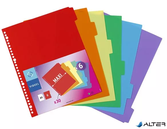 Regiszter, műanyag, A4 Maxi, 6 részes, VIQUEL