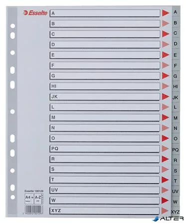 Regiszter, műanyag, A4 Maxi, A-Z, ESSELTE, szürke