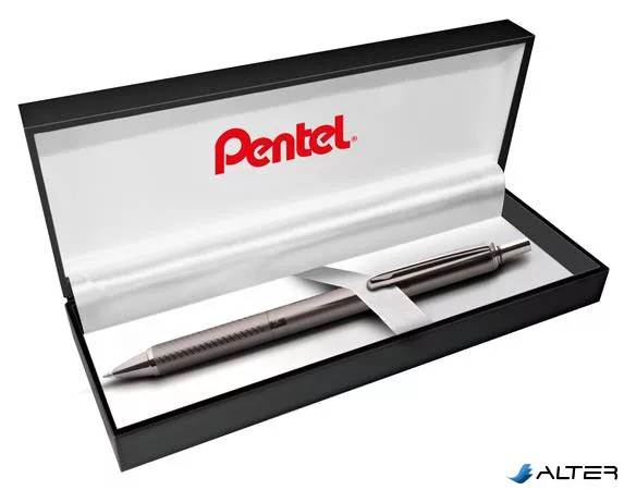 Zseléstoll, 0,35 mm, nyomógombos, antracit tolltest, PENTEL "EnerGel BL-407" fekete, ajándék kék tollbetéttel