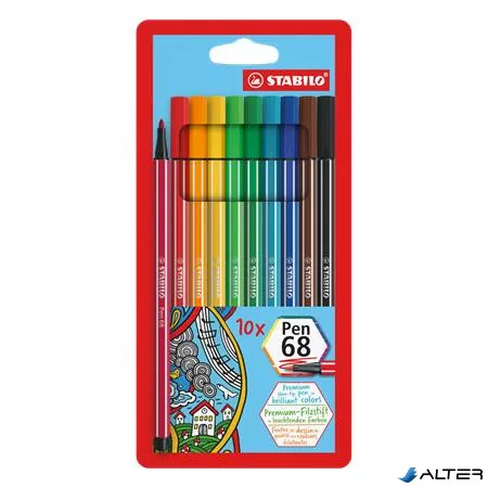 Filctoll készlet, 1 mm, STABILO "Pen 68", 10 különböző szín