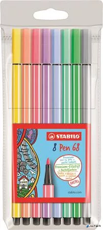 Filctoll készlet, 1 mm, STABILO "Pen 68", 8 pasztell szín