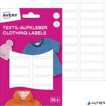 Ruhacímke, műanyag, iskolai, 45x13 mm, kézzel írható, AVERY ZWECKFORM, fehér, 36 címke/csomag