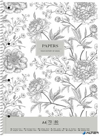 Spirálfüzet, A4+, kockás, 80 lap, SHKOLYARYK 'Vintage flowers', vegyes