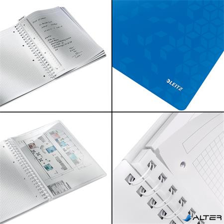 Spirálfüzet, A4, kockás, 80 lap, LEITZ 'Wow', kék