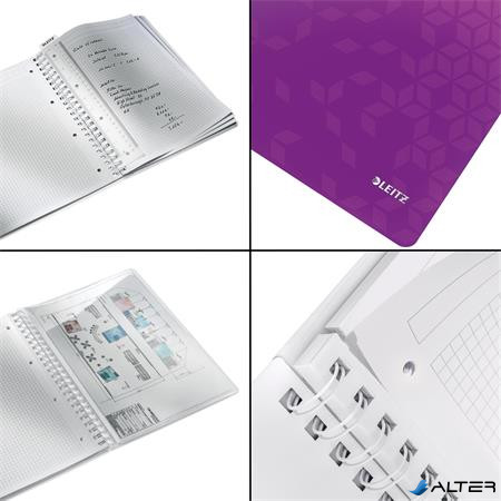 Spirálfüzet, A4, kockás, 80 lap, LEITZ "Wow", lila