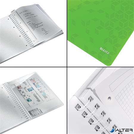 Spirálfüzet, A4, kockás, 80 lap, LEITZ 'Wow', zöld