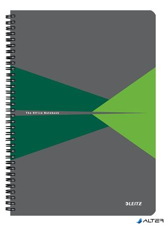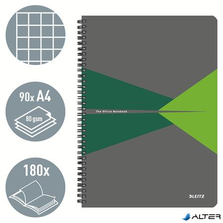 Spirálfüzet, A4, kockás, 90 lap, PP borító, LEITZ "Office", szürke-zöld