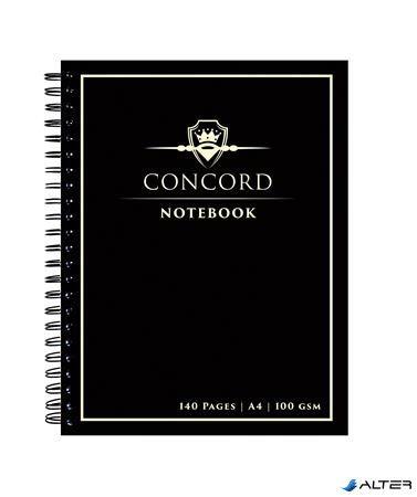 Spirálfüzet, A4, vonalas, 70 lap, CONCORD, fekete