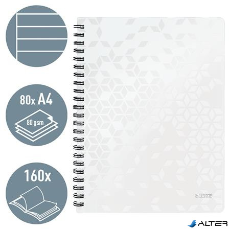 Spirálfüzet, A4, vonalas, 80 lap, LEITZ 'Wow', fehér
