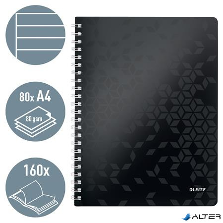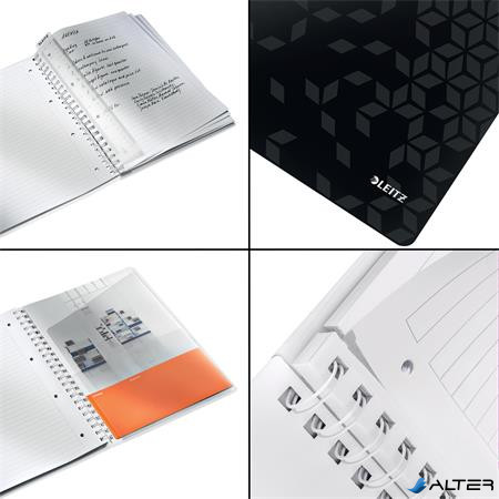 Spirálfüzet, A4, vonalas, 80 lap, LEITZ 'Wow', fekete