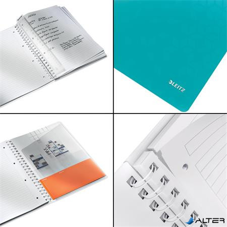 Spirálfüzet, A4, vonalas, 80 lap, LEITZ 'Wow', jégkék