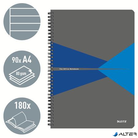 Spirálfüzet, A4, vonalas, 90 lap, laminált karton borító, LEITZ "Office", szürke-kék