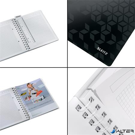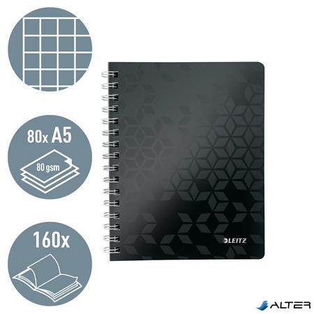 Spirálfüzet, A5, kockás, 80 lap, LEITZ 'Wow', fekete