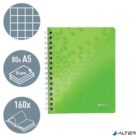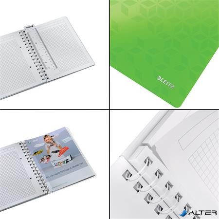 Spirálfüzet, A5, kockás, 80 lap, LEITZ "Wow", zöld