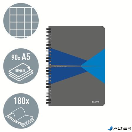 Spirálfüzet, A5, kockás, 90 lap, laminált karton borító, LEITZ "Office", szürke-kék