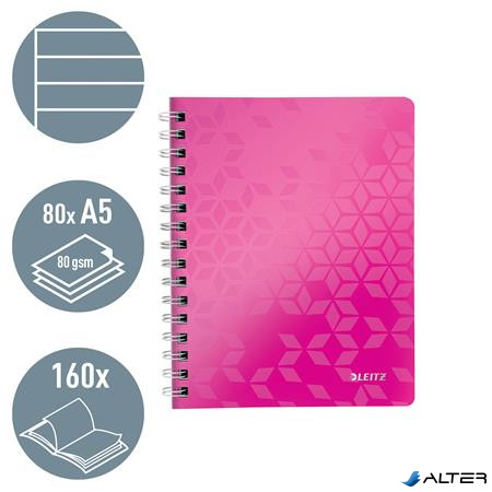 Spirálfüzet, A5, vonalas, 80 lap, LEITZ "Wow", rózsaszín