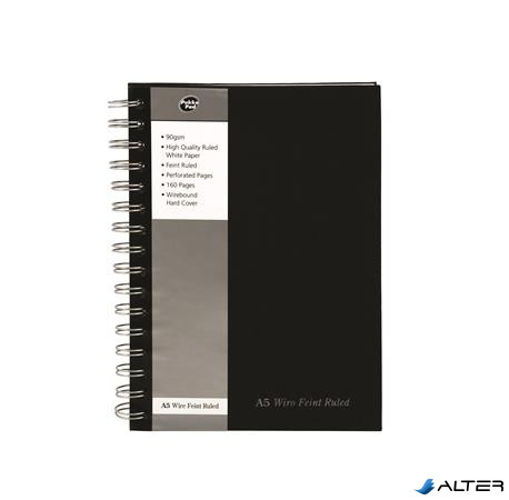 Spirálfüzet, A5, vonalas, 80 lap, PUKKA PAD 'Black', fekete