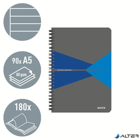 Spirálfüzet, A5, vonalas, 90 lap, laminált karton borító, LEITZ "Office", szürke-kék
