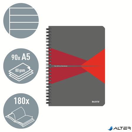 Spirálfüzet, A5, vonalas, 90 lap, laminált karton borító, LEITZ "Office", szürke-piros