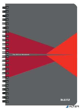 Spirálfüzet, A5, vonalas, 90 lap, PP borító, LEITZ "Office", szürke-piros
