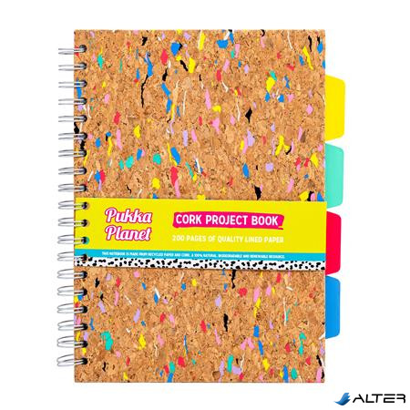 Spirálfüzet, B5, vonalas, elválasztóval, 100 lap, PUKKA PADS 'Planet Cork Project Book', parafa