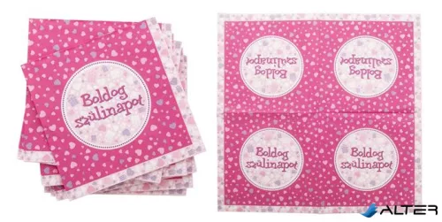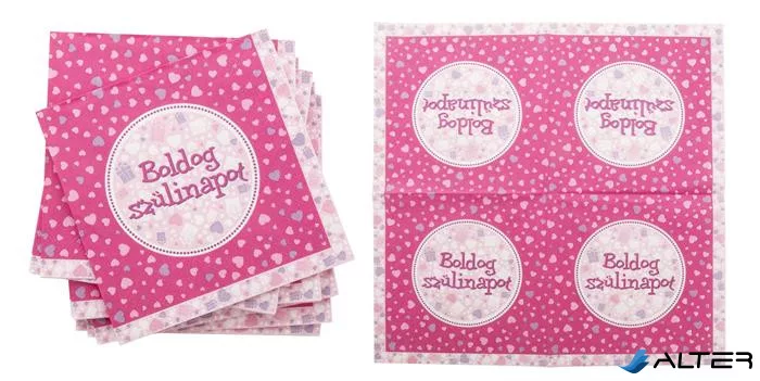 Szalvéta, 3 rétegű, 33x33 cm, "Boldog Születésnapot", rózsaszín