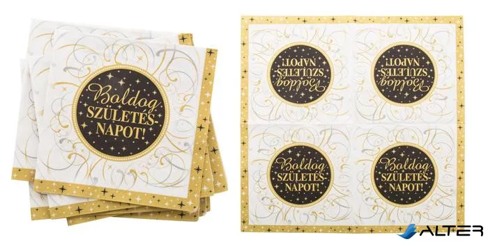 Szalvéta, 33x33 cm, "Boldog Születésnapot", elegáns