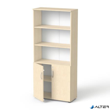 5 rendező magas, kombinált szekrény, ajtós és nyitott polcos részekkel