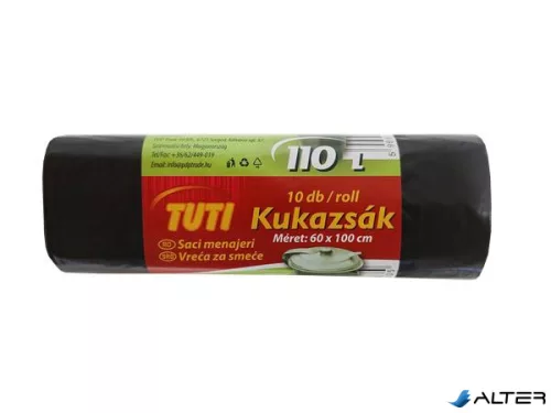 Szemeteszsák, 110 l, 10 db, 60x100 cm, 17 µ, TUTI, fekete