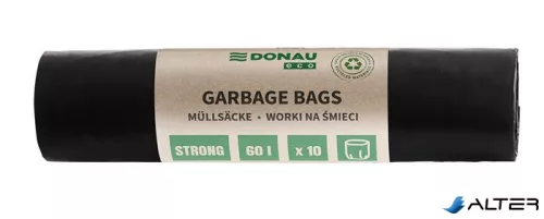 Szemeteszsák, extra erős, 60 l, 10 db, 30 µ, DONAU 'Eco', fekete