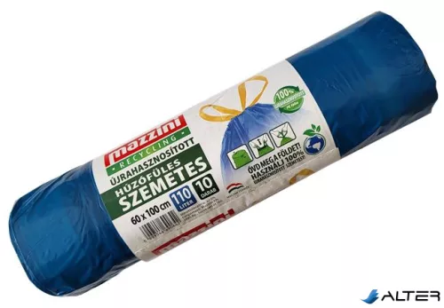 Szemeteszsák, újrahasznosított húzófüles, 110 l, 10 db, 60x100 cm, 28 µ, MAZZINI, kék