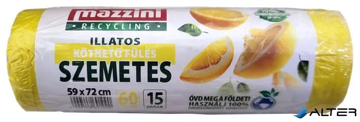 Szemeteszsák, újrahasznosított, köthető füles, illatosított, 60 l, 15 db, 59x72 cm, 13 µ, MAZZINI, citrus illat