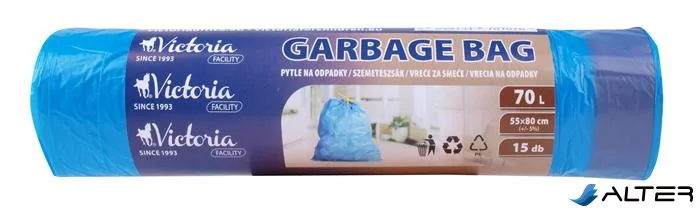 Szemeteszsák, zárószalagos, 70 l, 15 db, 55x80 cm, VICTORIA FACILITY