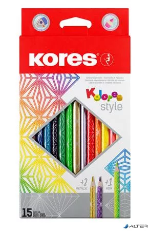 Színes ceruza készlet, háromszögletű, KORES 'Kolores Style', 15 különböző szín