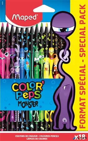Színes ceruza készlet, háromszögletű, MAPED "Color'Peps Monster" 18 különböző szín