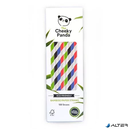 Szívószál, bambusz, egyenes, lebomló, bambusz, 100 db, CHEEKY PANDA, vegyes színek