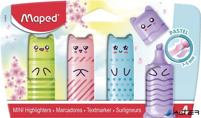 Szövegkiemelő készlet, 1-5 mm, MAPED 'Mini Pastel', 4 különböző pasztell szín