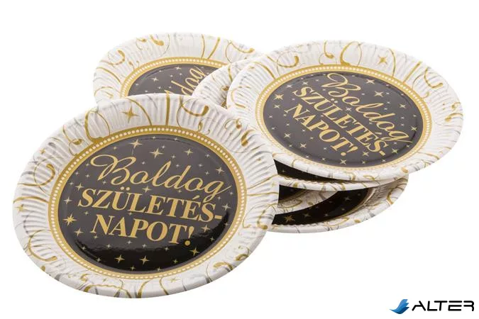 Tányér, papír, 23 cm, "Boldog Születésnapot", elegáns