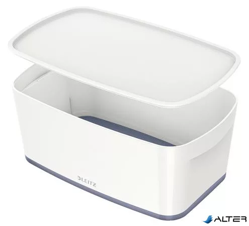 Tároló doboz, fedővel, kicsi, LEITZ "MyBox", fehér-szürke