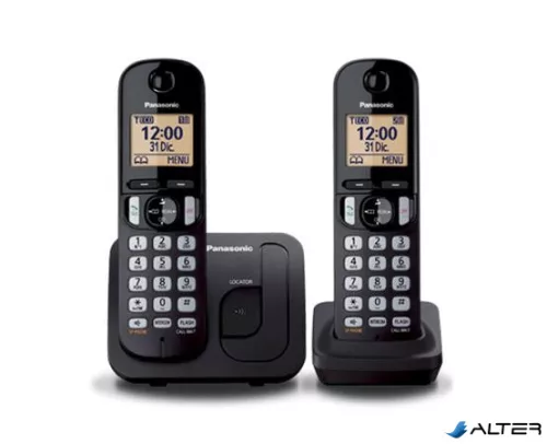 Telefon, vezeték nélküli, telefonpár, PANASONIC "KX-TGC212PDB Duo, fekete