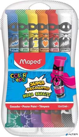 Tempera készlet, 12 darabos, műanyag dobozban, MAPED