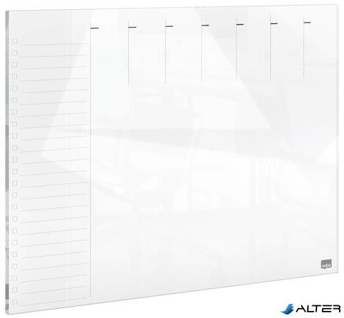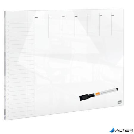 Tervezőtábla, üveg, mágneses felület, heti, 43x56 cm, NOBO "Home", fehér
