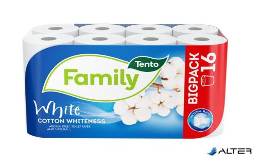 Toalettpapír, 2 rétegű, kistekercses, 16 tekercs, TENTO "Family White", fehér