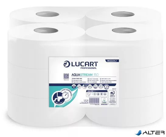 Toalettpapír, 2 rétegű, nagytekercses, 150 m, 19 cm átmérő, LUCART "Aquastream 150", fehér