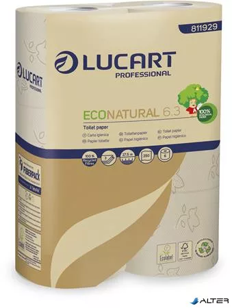 Toalettpapír, 3 rétegű, 6 tekercs, kistekercses, 27,5 m, LUCART "EcoNatural 6.3" barna