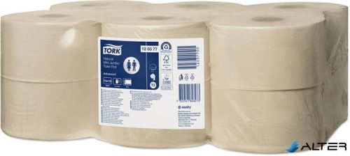 Toalettpapír, T2 rendszer, 2 rétegű, 19 cm átmérő, Advanced, TORK "Mini Jumbo", natúr