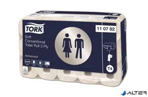 Toalettpapír, T4 rendszer, 3 rétegű, 12,5 cm átmérő, Advanced, TORK, fehér