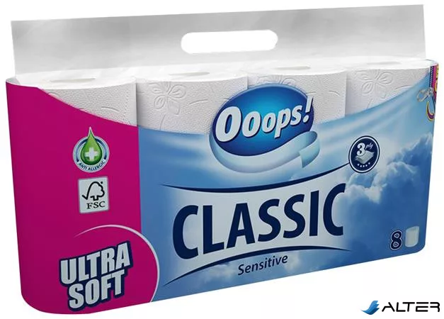 Toalettpapír, 3 rétegű, kistekercses, 8 tekercs, OOOPS "Classic", sensitive