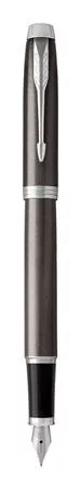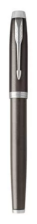Töltőtoll, ezüst színű klip, sötétbarna tolltest, PARKER 'Royal IM'