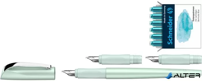 Töltőtoll ajándékszett, 1,1 mm, ajándék 1,5 és 1,8 mm-es tollheggyel, SCHNEIDER "Callissima", mentazöld